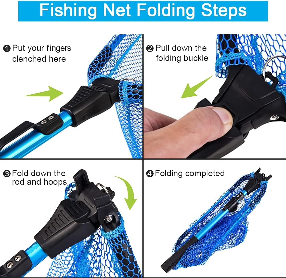 LBW Folding Fishing Net for Freshwater Saltwater, Landing Net for Fishing, Collapsible Kayak Fishing Net, Rubber Fishing Net for Trout, Catfish, Bass, Telescopic Aluminum Pole Handle